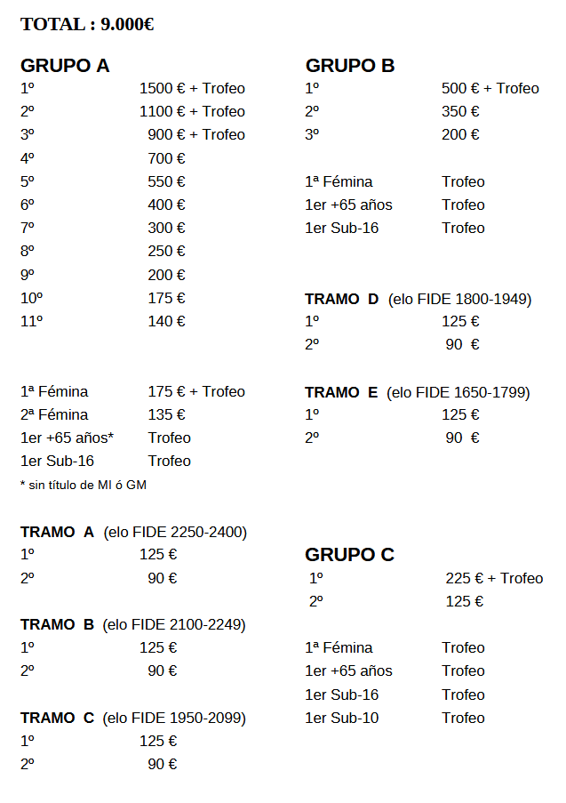Todos los premios monetarios están sujetos a la retención de IRPF correspondiente, según la legislación española vigente :